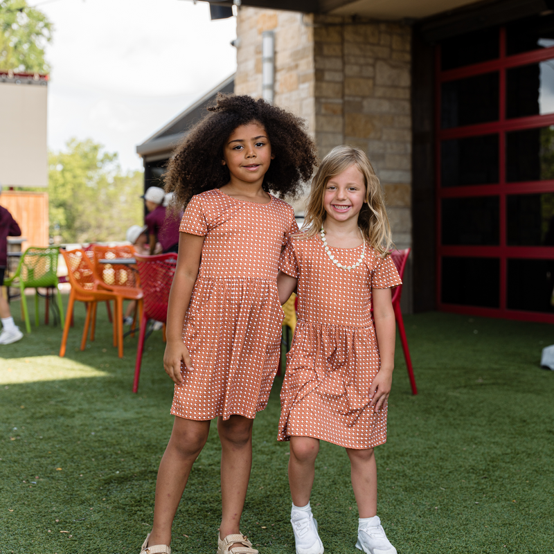Youth Moxie Dress - Texas - Orange & White