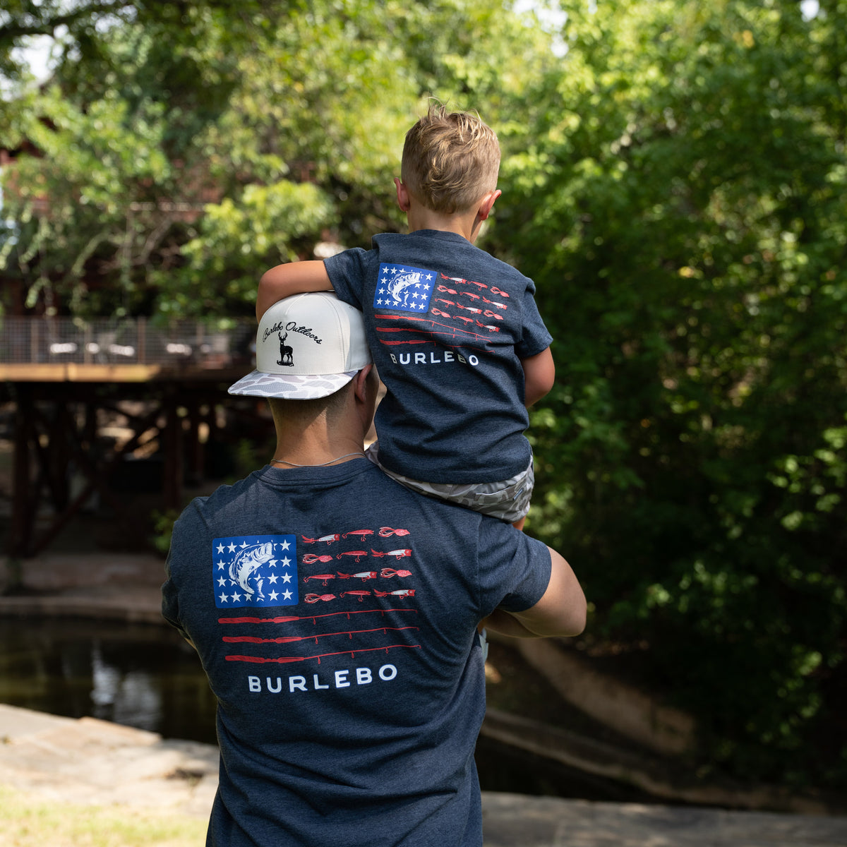 Father and Son Bundle - Short Sleeve Tee - Fishing USA - Heather Navy