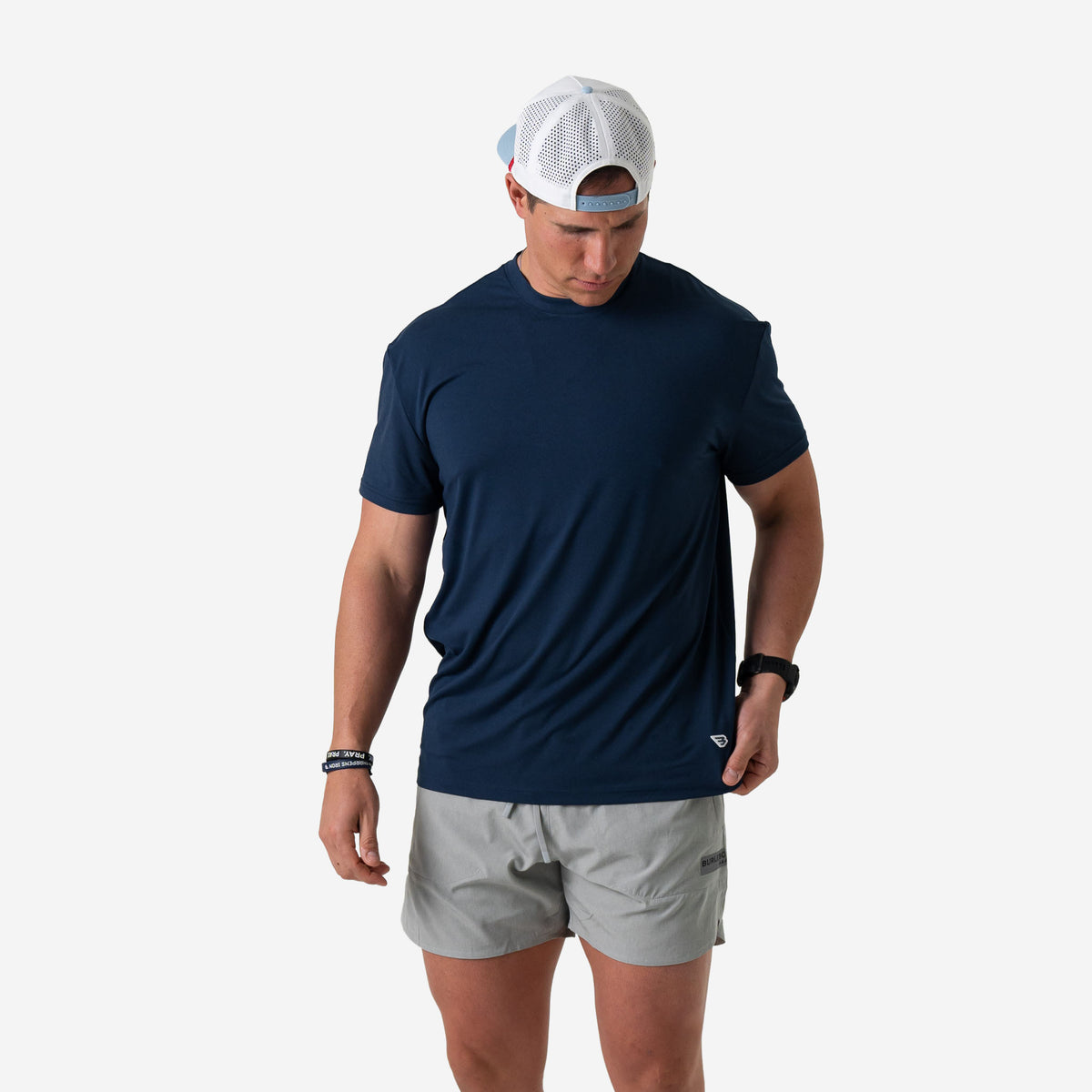 Our "Go To Tee," the ultimate companion for your active lifestyle. Crafted from a blend of 91% polyester and 9% spandex, this tee offers superior comfort and performance, ensuring you stay cool and dry throughout the day. With UPF 50 sun protection, you can confidently take on outdoor activities while shielding your skin from harmful UV rays. The lightweight performance fabric is quick-drying and moisture-wicking, keeping you fresh and comfortable even during the most intense workouts. Featuring anti-microbial properties, this tee helps combat odor-causing bacteria, keeping you feeling fresh and confident all day long. Whether you're hitting the gym, going for a run, or simply running errands, our "Go To Tee" is the perfect choice for all your active endeavors.