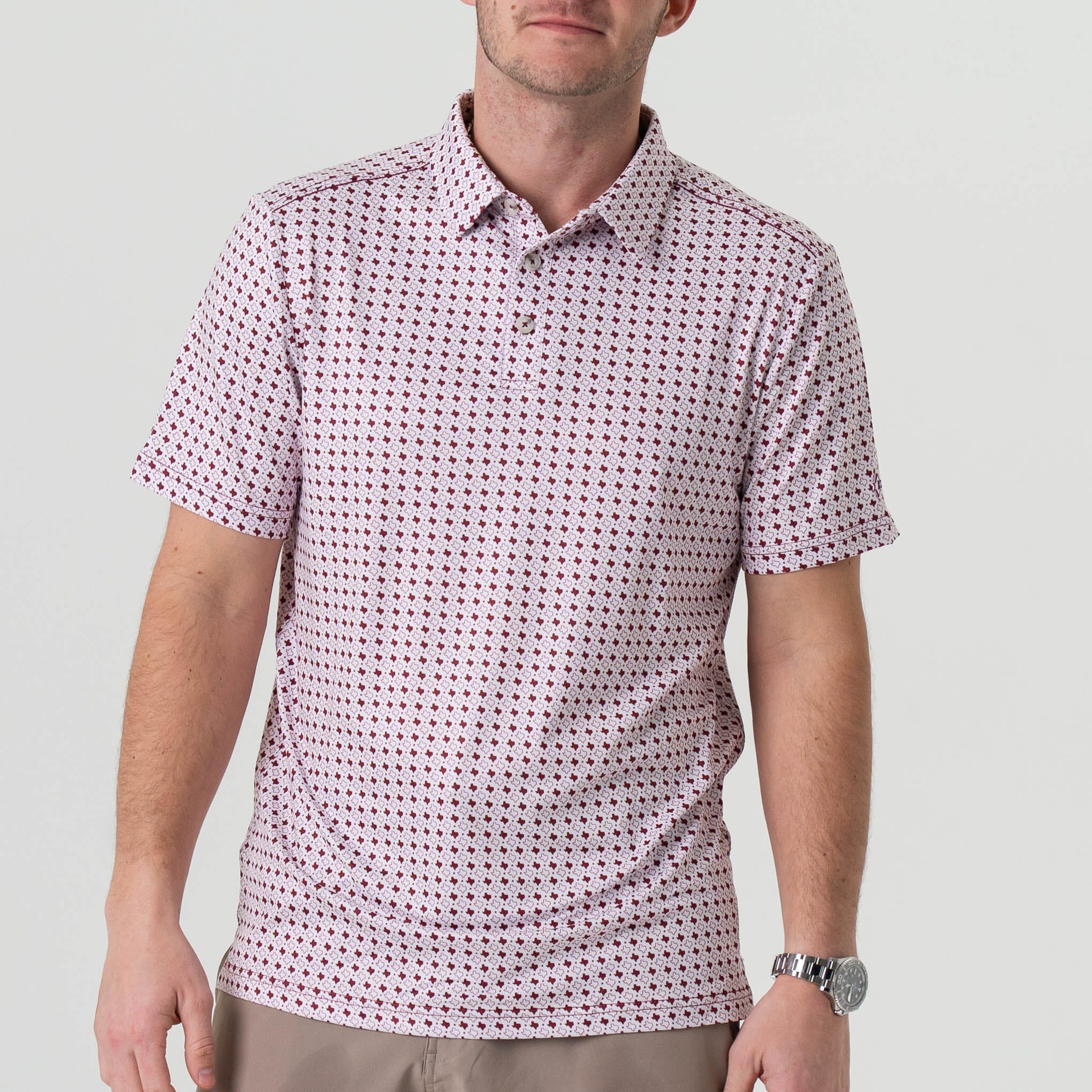 Performance Polo - Texas - White & Maroon